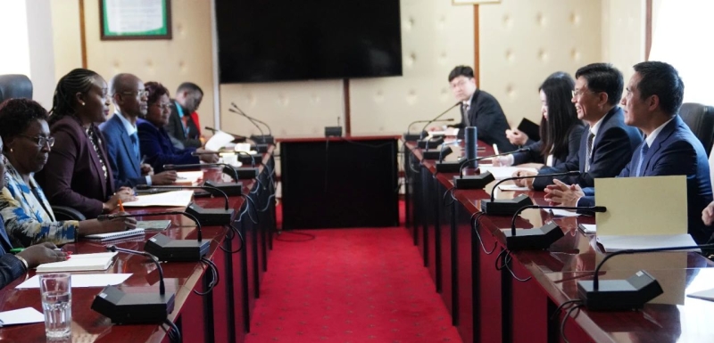 生态环境部党组书记孙金龙会见肯尼亚环境、气候变化与林业部部长并调研中方承建项目。
